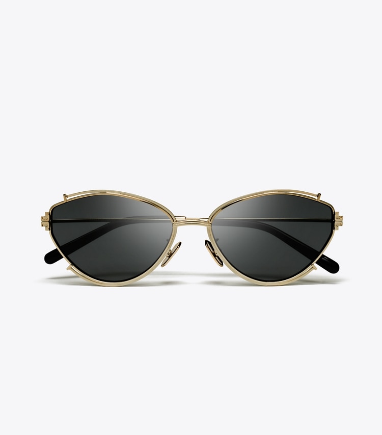 >> TORY BURCH ELEANOR OVAL SUNGLASSES - Shiny Gold/Dark Grey